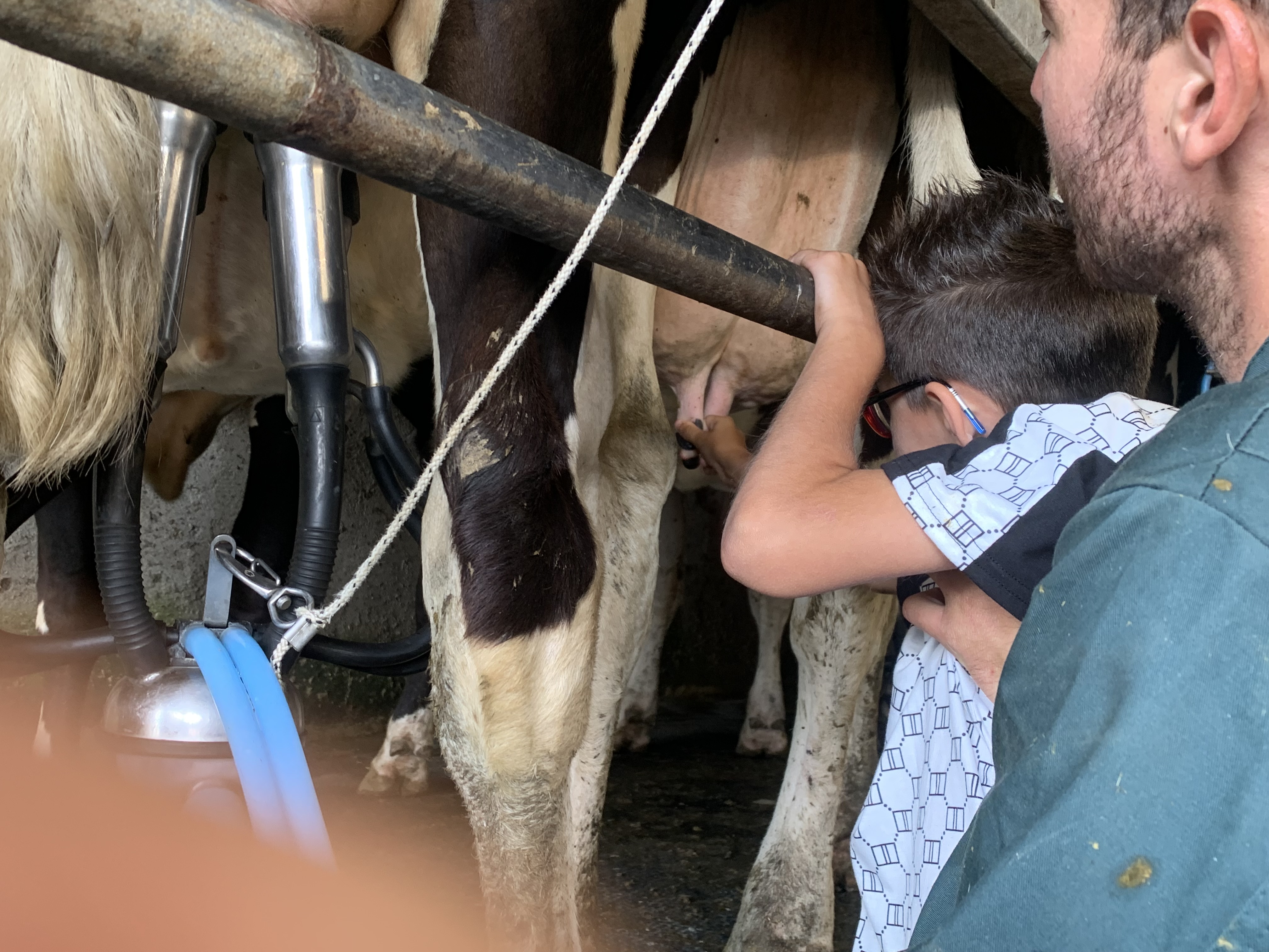 Mon fils de deux ans a apprécié ce petit moment entre les vaches, les veaux et le lait