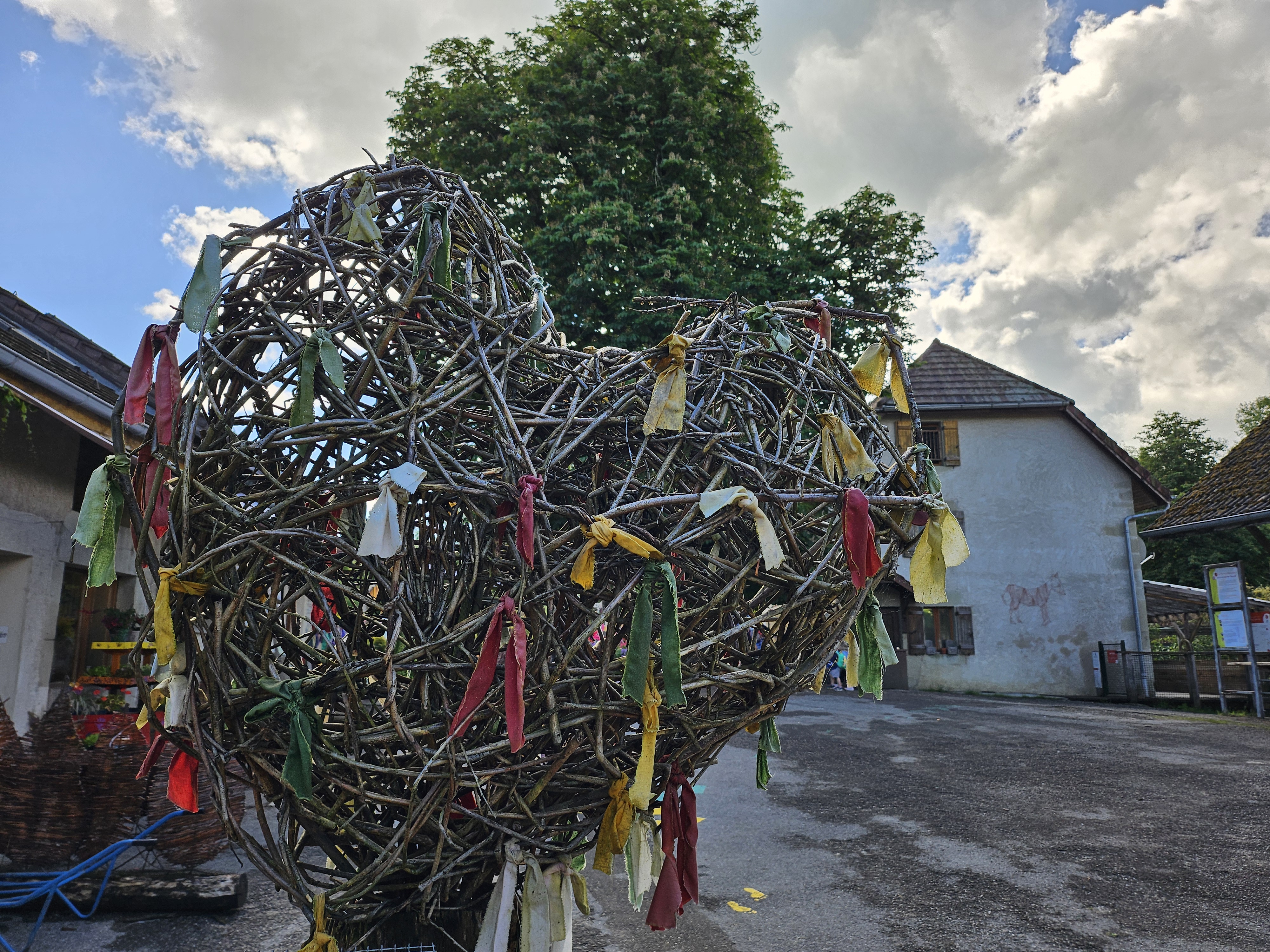 Sortie idéale du week-end avec les enfants : animaux de la ferme, balade ponctuée d'oeuvres Land Art au frais dans la forêt (coup de coeur pour les maisons des 3 petits cochons) et parcours pieds nus 👌
