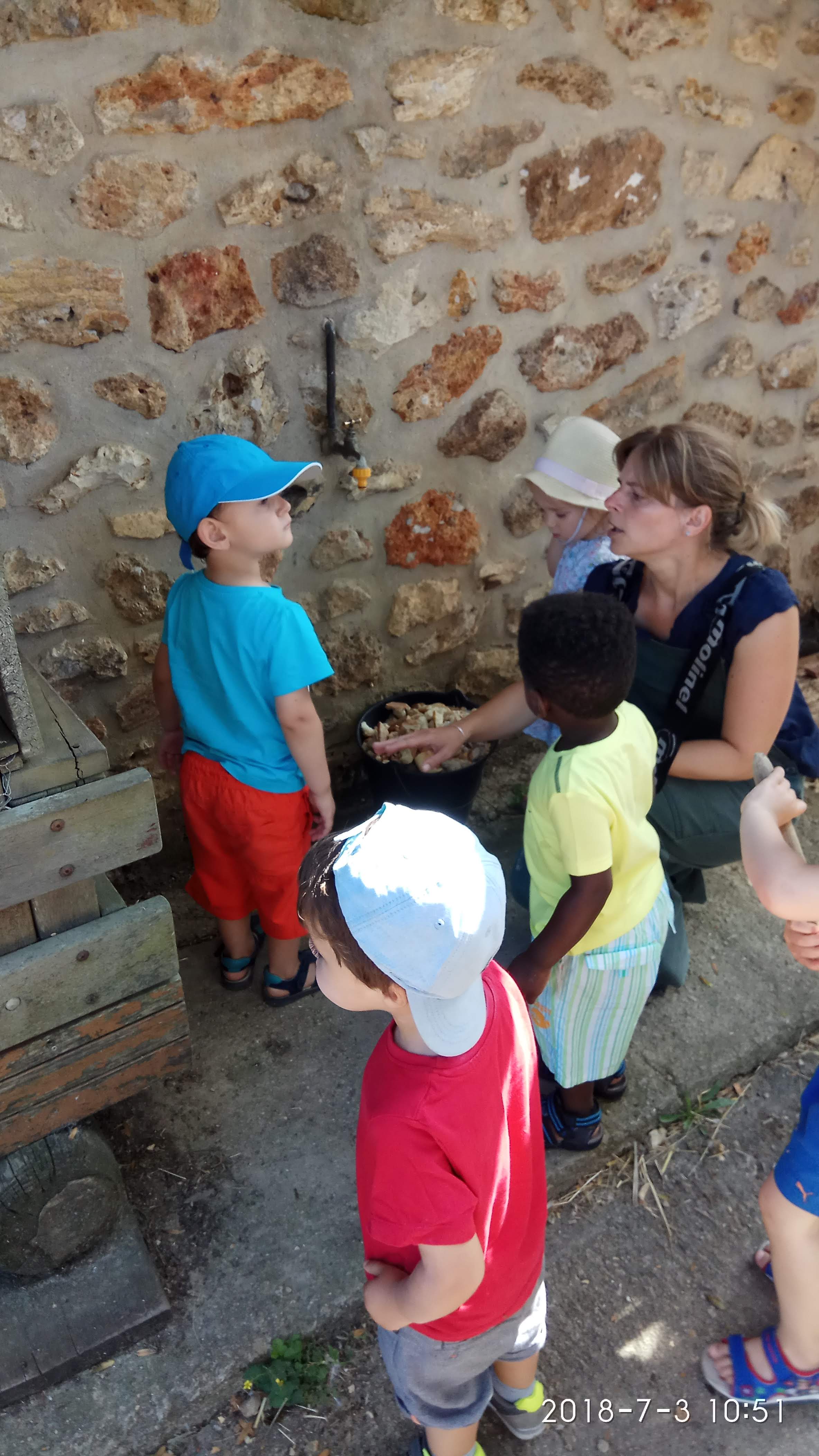 Excellente matinée d'animation avec les enfants de la crèche collective de Massy Vilmorin. L'animation était exceptionnelle et très adaptée aux enfants de crèche : briefing + pause pipi + remplissage marre aux oies +préparation nourriture aux oies + spectacle des oies et canards qui mangent + carresses lapins + moutons + sortie du cochon qui a mangé un œuf de femelle dobfons + carresses poussin puis pique nique dehors :-)))