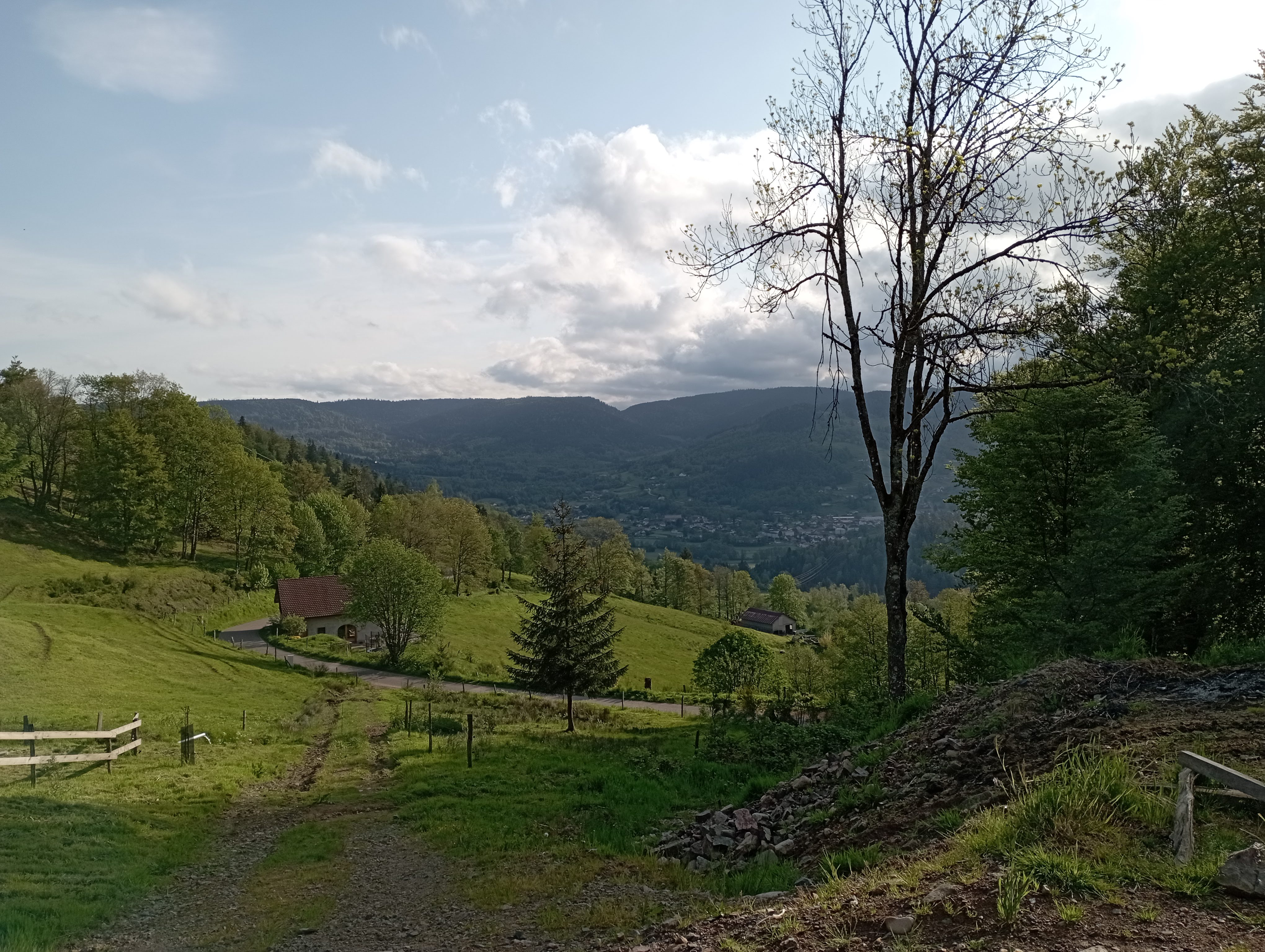 L'approche est assez raide et sinueuse, mais la place de parking est spacieuse sur du gravier devant la grande écurie en bois. La dame des chiens de ferme nous a accueillis avec joie. Malheureusement, notre français n'était pas suffisant pour discuter avec les agriculteurs qui travaillaient dur à la grange pendant la journée. Sinon ok
