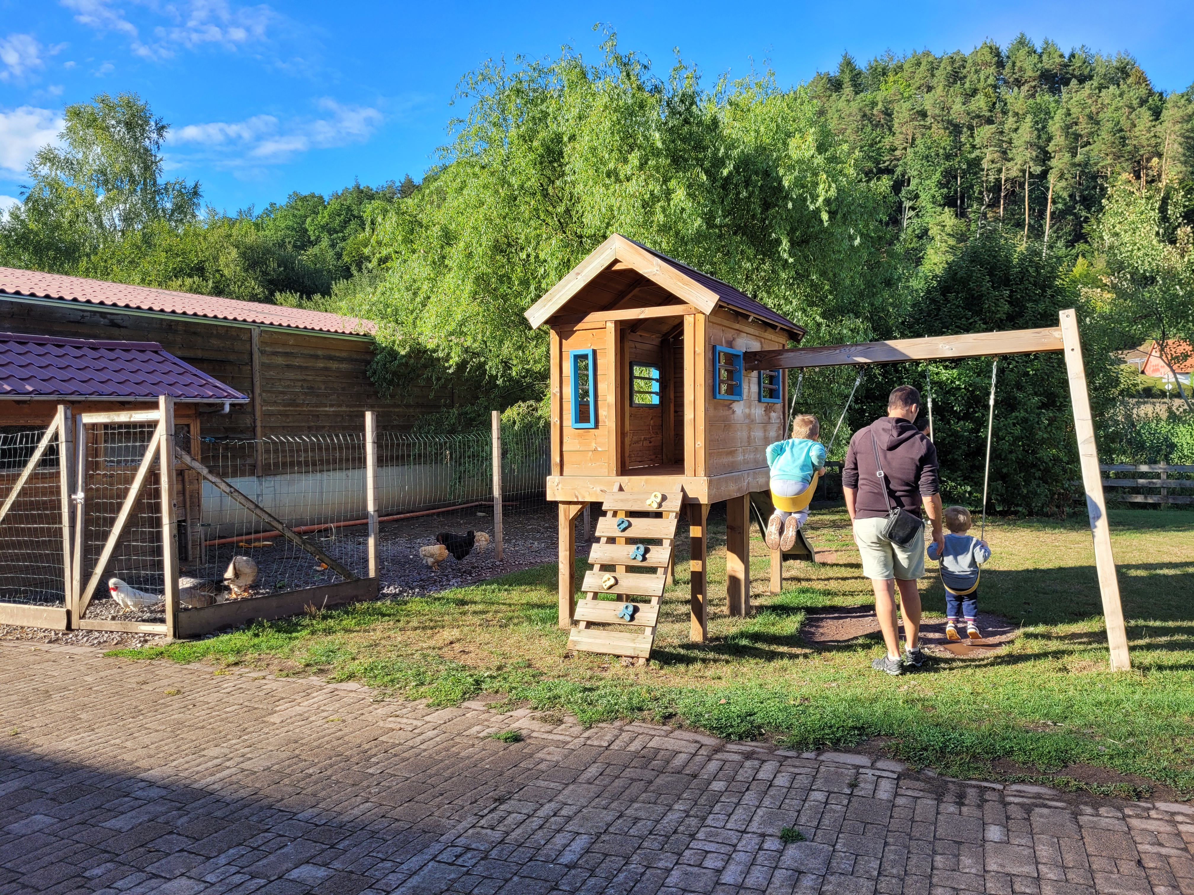 De beaux espaces pour les enfants peuvent jouer, une buvette pour de délicieuses boissons ou glace au lait de chèvre, on peut voir la traite des chèvres. Un super moment en famille