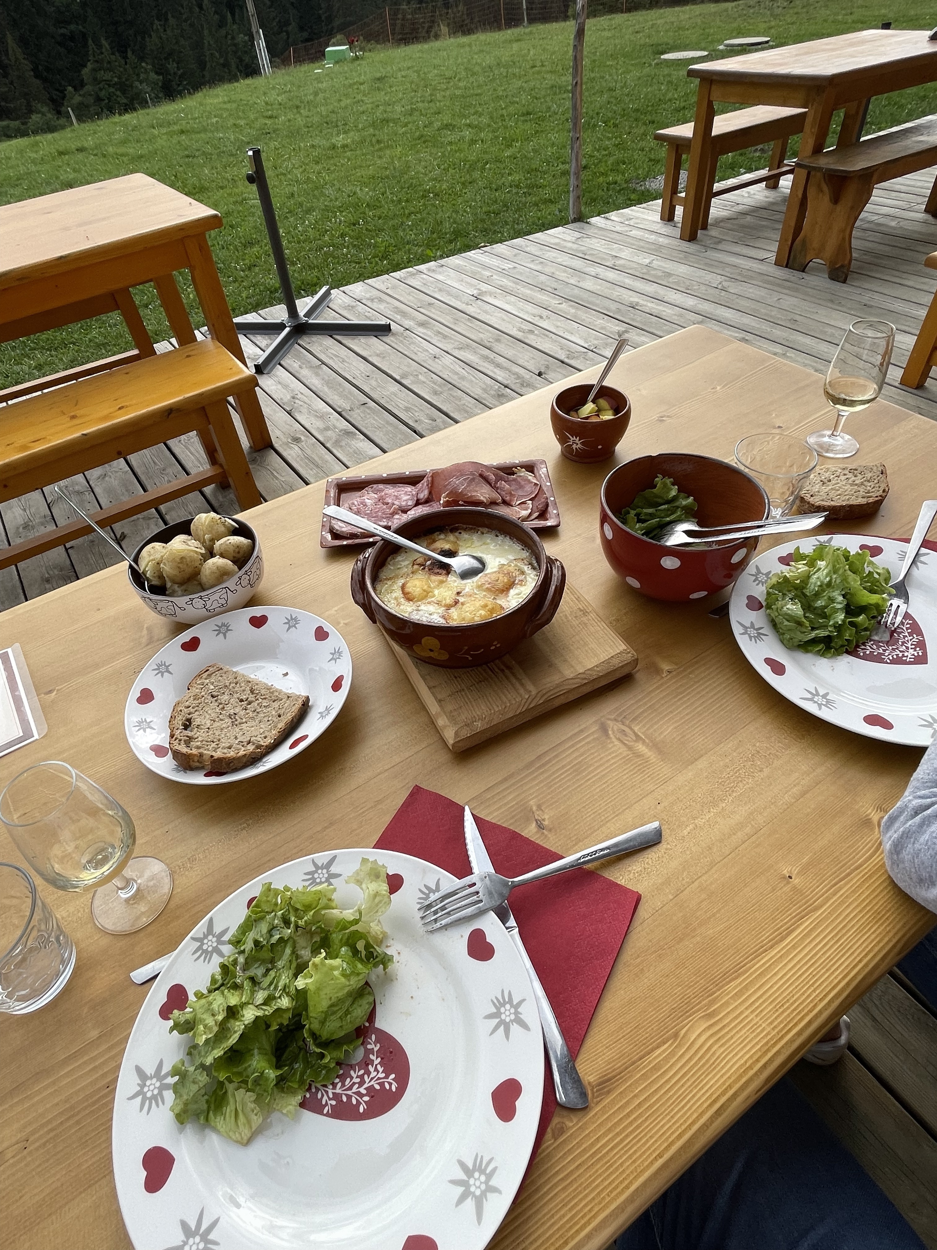 Un cadre et une terrasse superbe au milieu des montagnes avec la cloche des vaches en bruit de fond. Un repas du terroir avec des produits de la ferme. Le top, très très bon,excellent. Pour nous le bonus nous avons eu la chance de voir le coucher de soleil 🌅