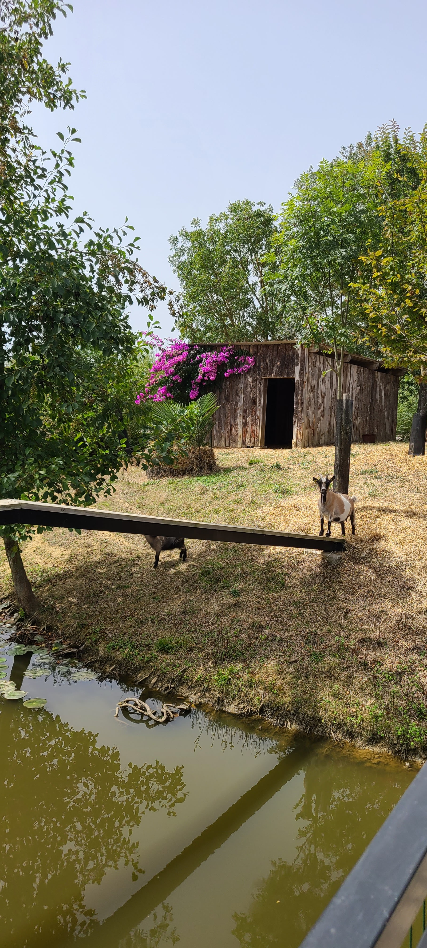 Une super journée en famille, avec des animaux de la ferme sociables, des jeux pour les enfants et des bancs à l'ombre pour les parents. La ferme est très agréable et tranquille. Une belle découverte ! Nous avons même fait un tour en barque.
