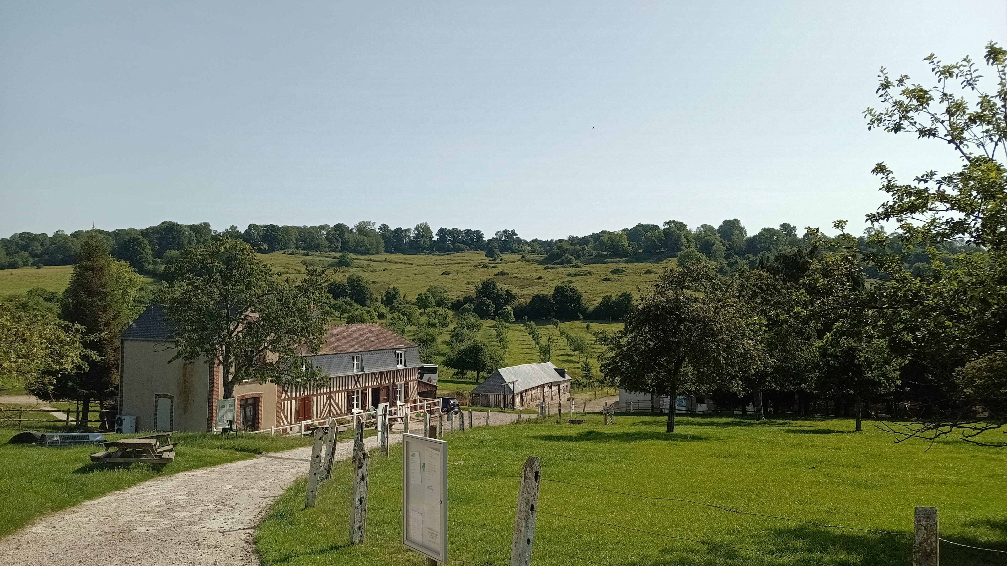 Super ferme au coeur du bocage normand. Des poules, des vaches, des cochons... Et un super verger ! Éric Le fermier est intarissable sur la fabrication du cidre ;-)