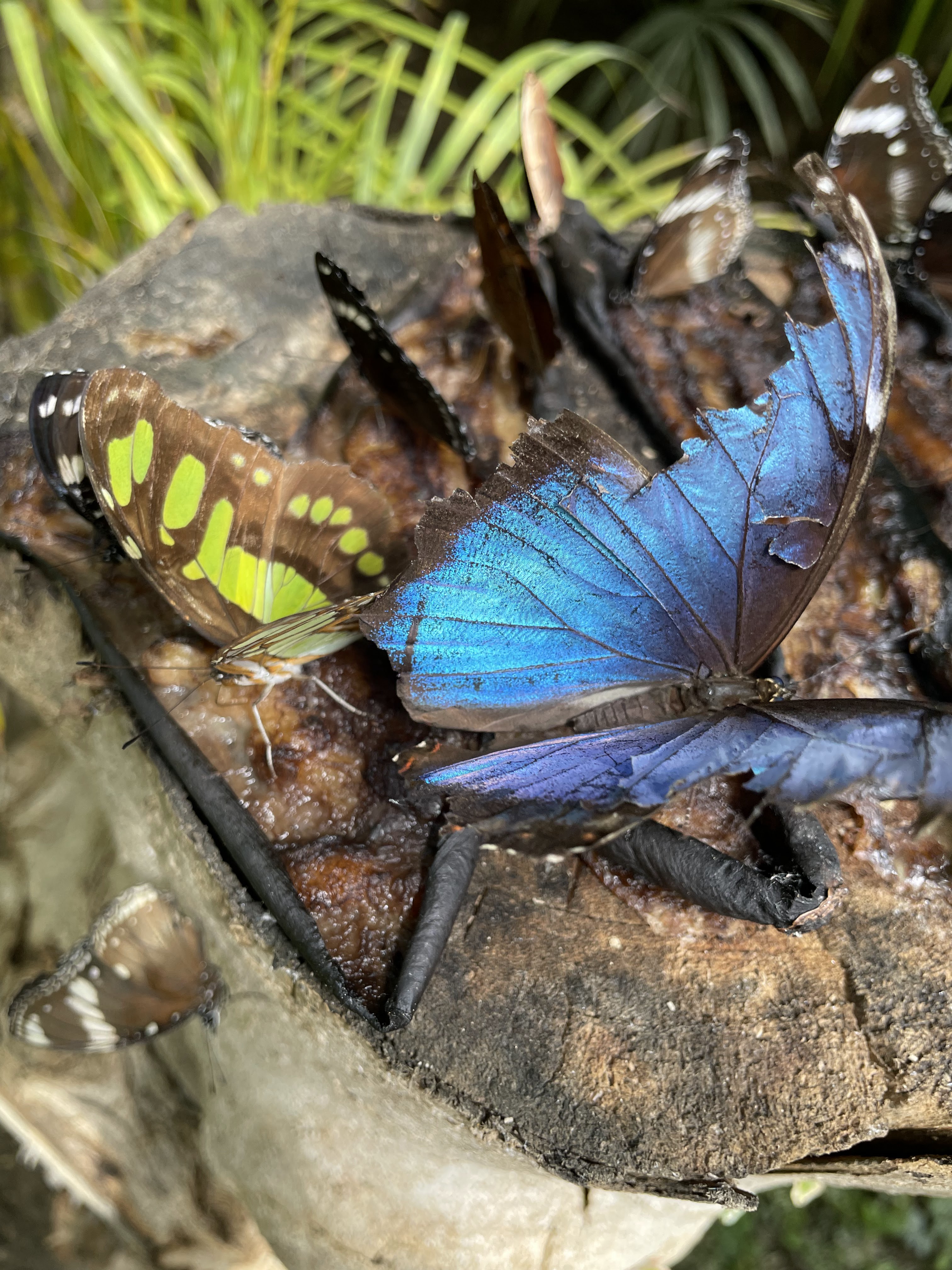 Joli moment passé sous cette serre tropicale à 25 degrés au milieu de papillons. Nous avons même pu observer des papillons qui dépliaient leurs ailes en sortant de leur chrysalide.