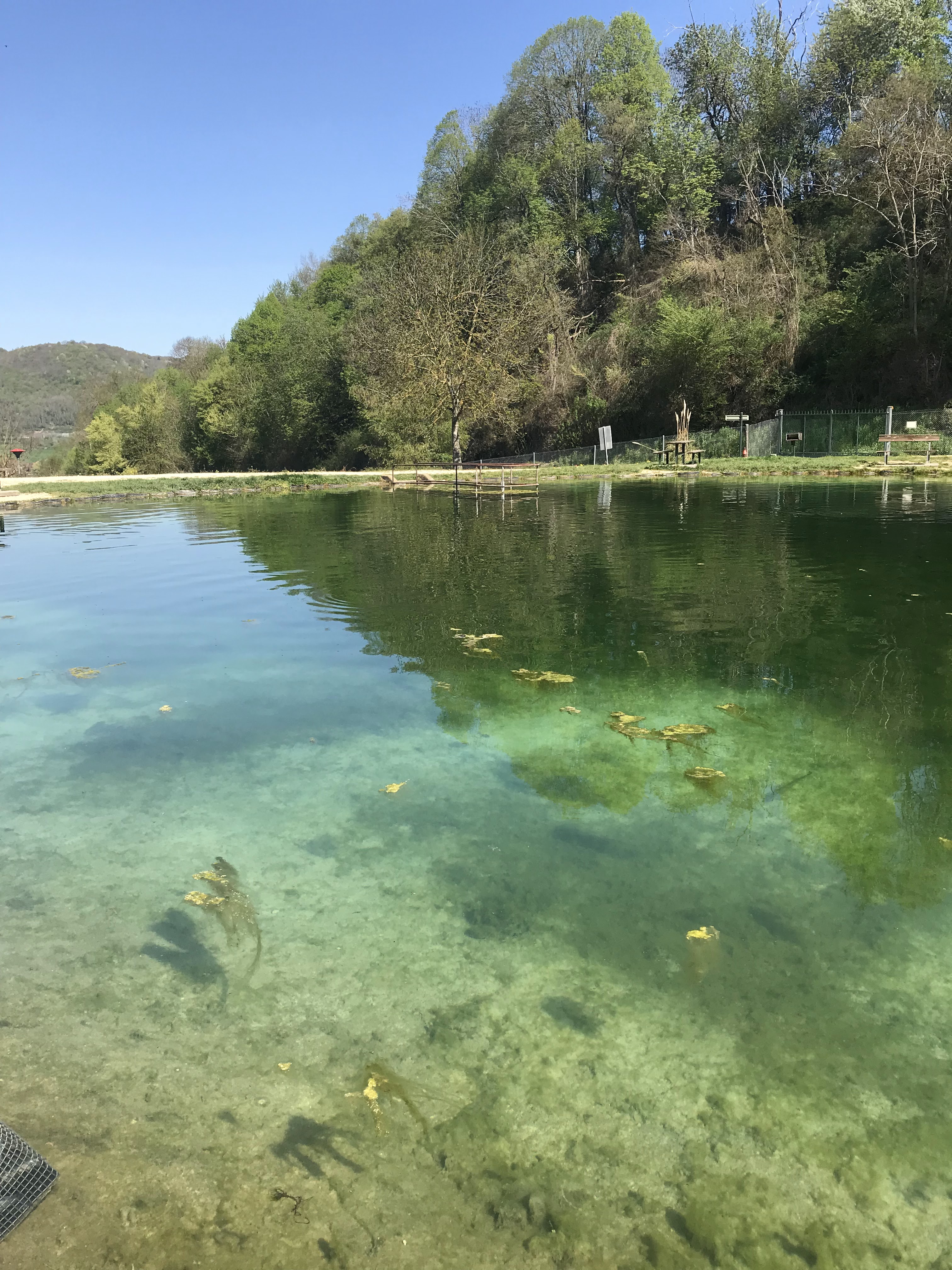 Étang bien fourni en truites Idéal pour les enfants qui veulent pêcher (il faut savoir mettre l’appât sur l’hameçon et décrocher le poisson…)
