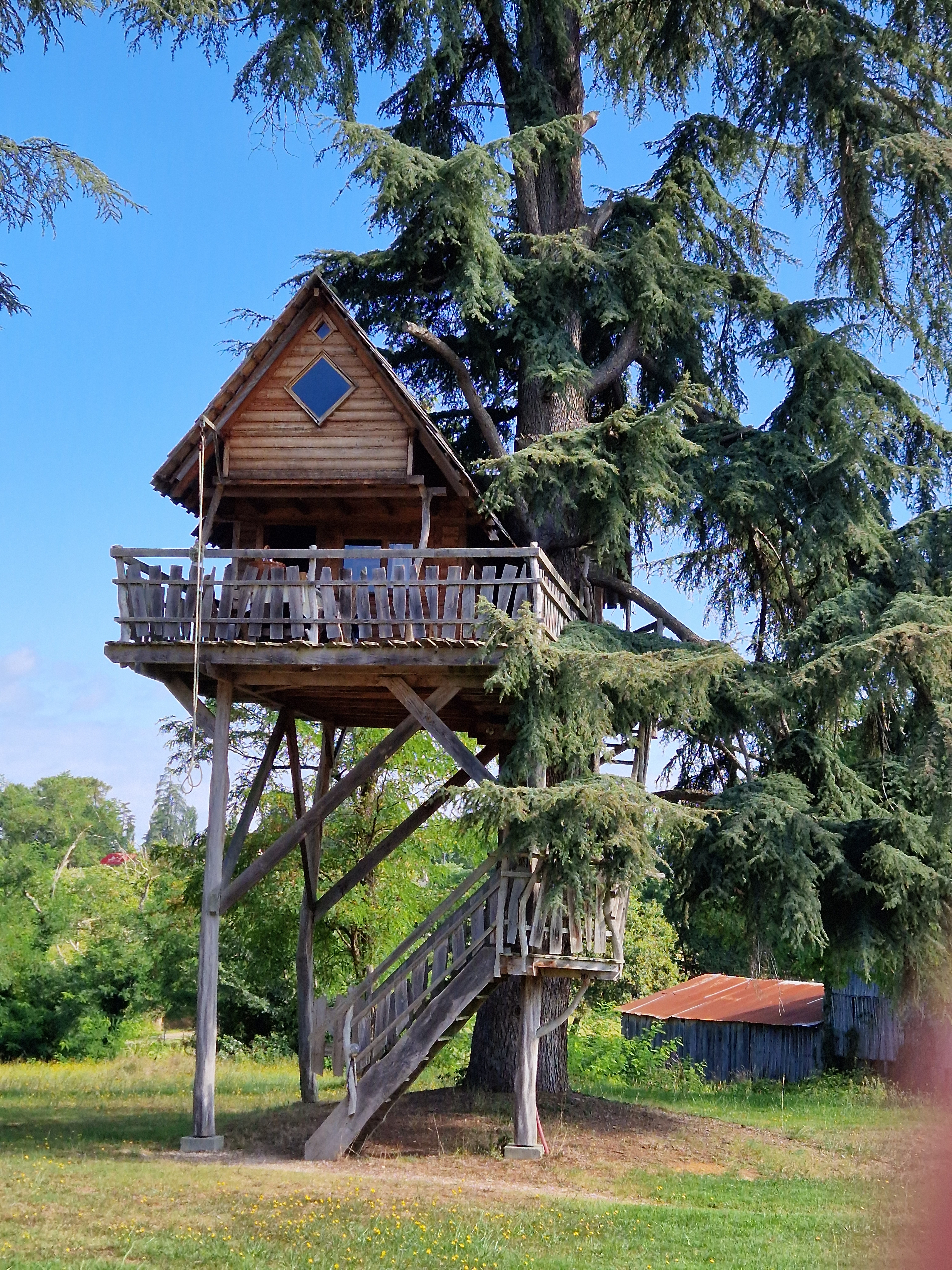 Hébergement perché dans un arbre, le top. Paysage splendide, le grand calme (après journée circuit Nogaro)silence, pas de voiture. Piscine ,toilettes, douche. Accueilli avec le sourire je recommande.. en vidéo réception du petit déjeuner. Merci pour ce décor